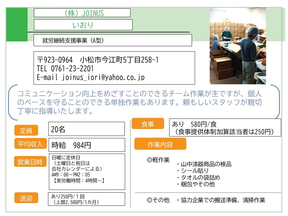 8 小松18Work【就労支援A型】